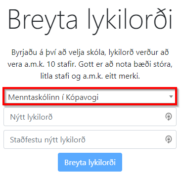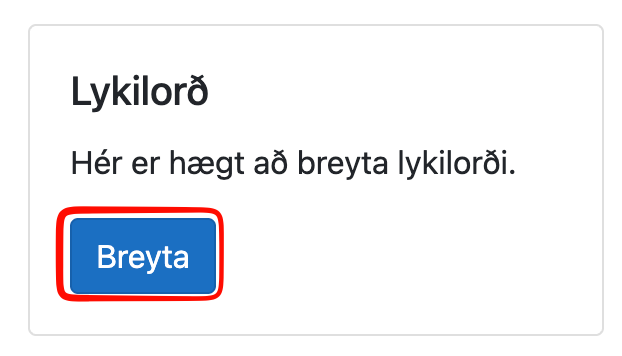 Og velur þér svo nýtt lykilorð sem er amk. 10 stafabil að lengd.